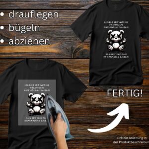 - Bügel oder pressen bei 120- 150 °C, 15 Sekunden – fix ist fix.