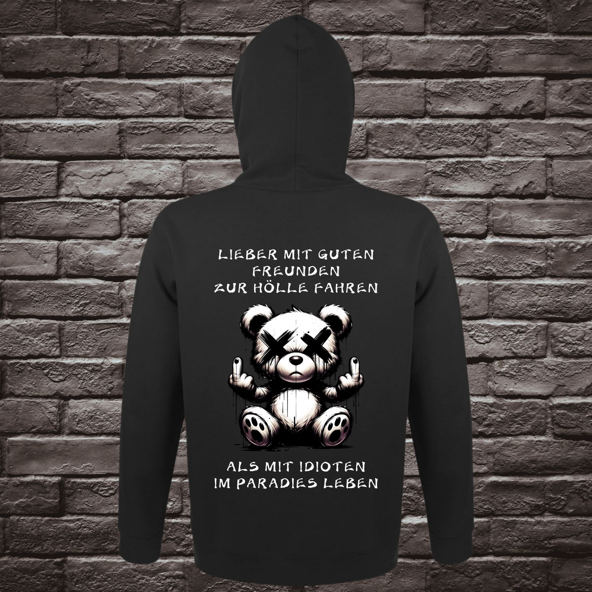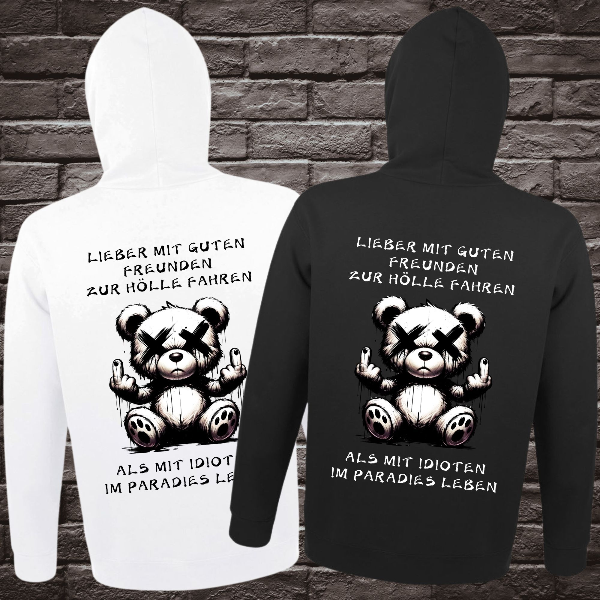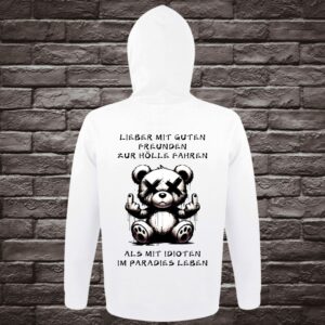 Dieser Hoodie mit sarkastischem Motiv auf der Brust und dem Rücken ist nicht nur ein modisches Highlight, sondern auch eine perfekte Möglichkeit, deinem Humor Ausdruck zu verleihen. Mit seinem auffälligen Print bist du garantiert ein Blickfang – ob auf der Straße oder im Freundeskreis.
