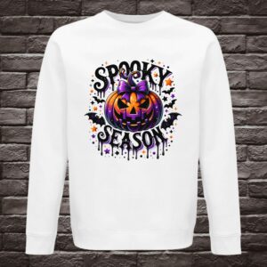 It’s spooky time! 🦇 Mit unserem Halloween Sweatshirt „Spooky Season“ bist du perfekt ausgestattet für die gruseligste Jahreszeit. Der bunte Kürbis-Print in Orange & Lila macht dein Outfit zum absoluten Eyecatcher – cozy, cool & spooky zugleich.
