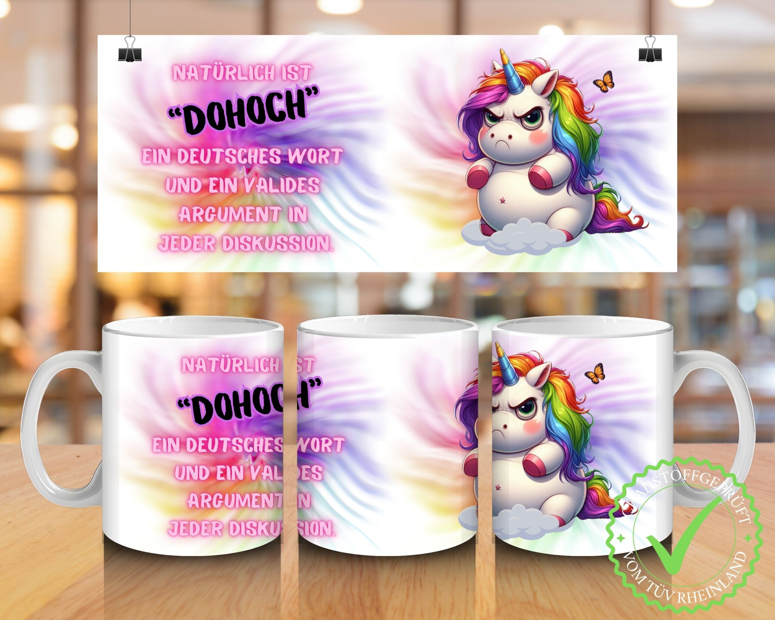Unsere Tassen-Rohlinge sind schadstoffgeprüft vom TÜV Rheinland gemäß § 31 LFGB – das bedeutet: sicher für dich, sicher für die Umwelt.