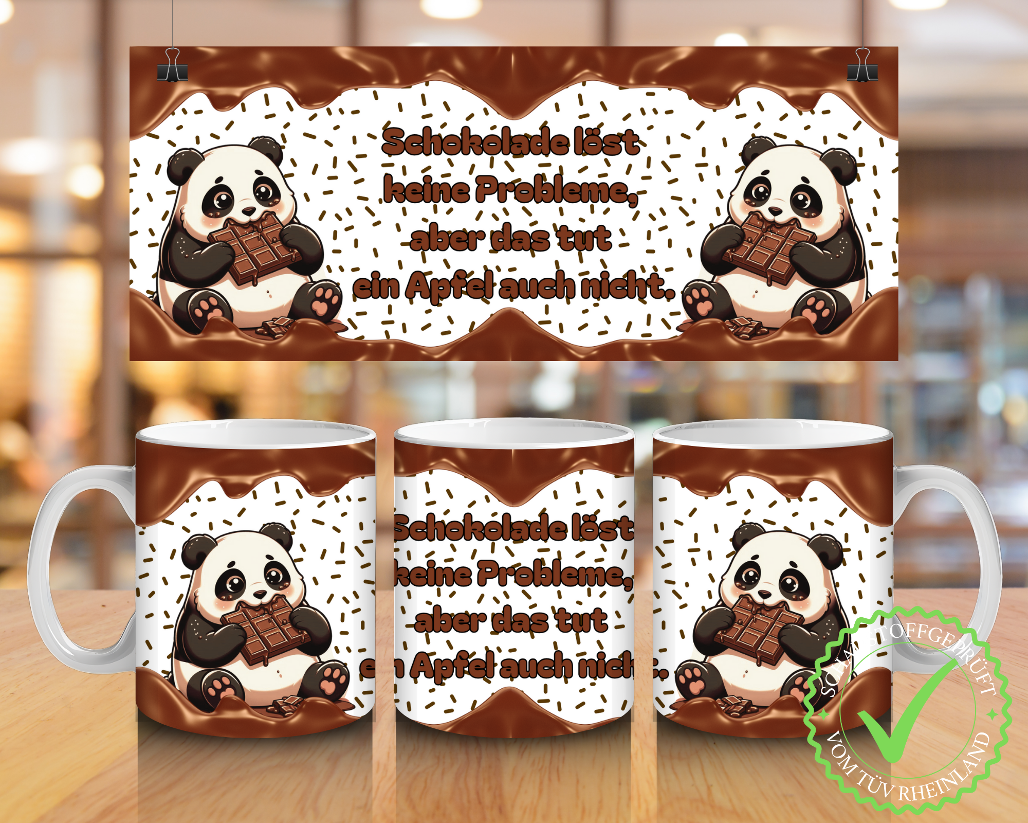 Unsere Tassen-Rohlinge sind schadstoffgeprüft vom TÜV Rheinland gemäß § 31 LFGB – das bedeutet: sicher für dich, sicher für die Umwelt.